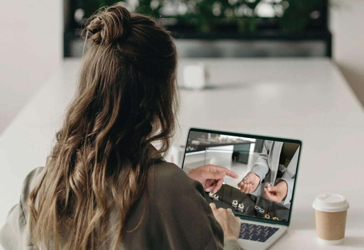 Connect with us from the comfort of your home through a virtual appointment. During the session, weâll guide you through our jewelry collections, answer your questions, and help you design or select the perfect piece. Itâs a personalized, one-on-one experienceâtailored entirely to your style, needs, and timeline.